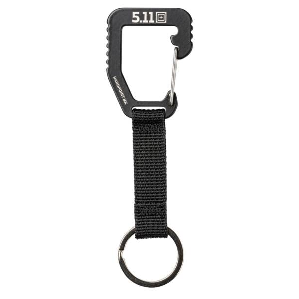 The Hardpoint MK1 is the smallest of the Hardpoint series. A stainless steel-bodied carabiner with a wire gate, it is sized to fit on pant loops and similar attachment points. Theres also a webbing strap with a 1 in. strap pass-through and a split metal ring for keys or other small EDC items. Its a handy little piece of hardware and good to have on hand.